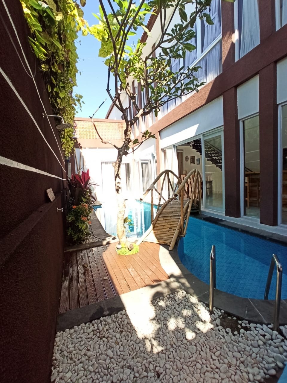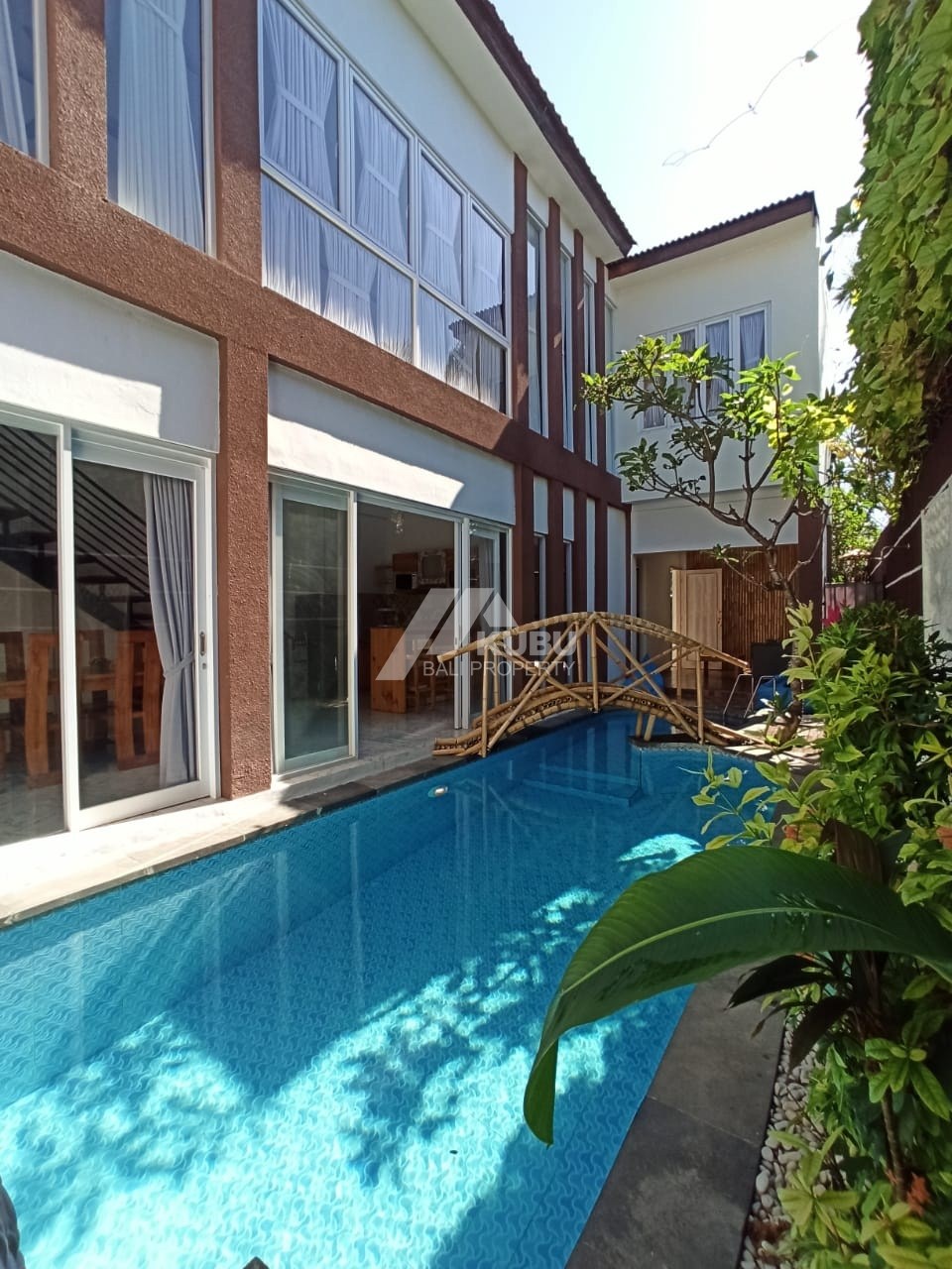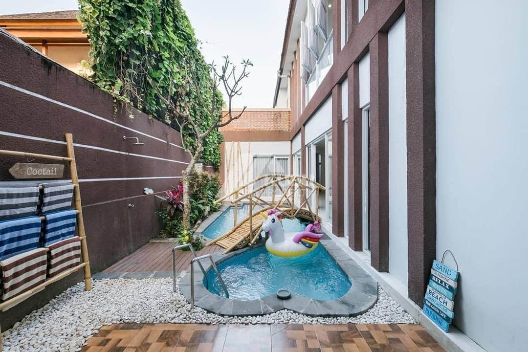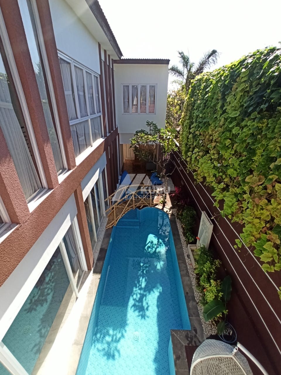 2-storey building with a rooftop for sunbathing and relaxation. a long swimming pool with a beautiful design.