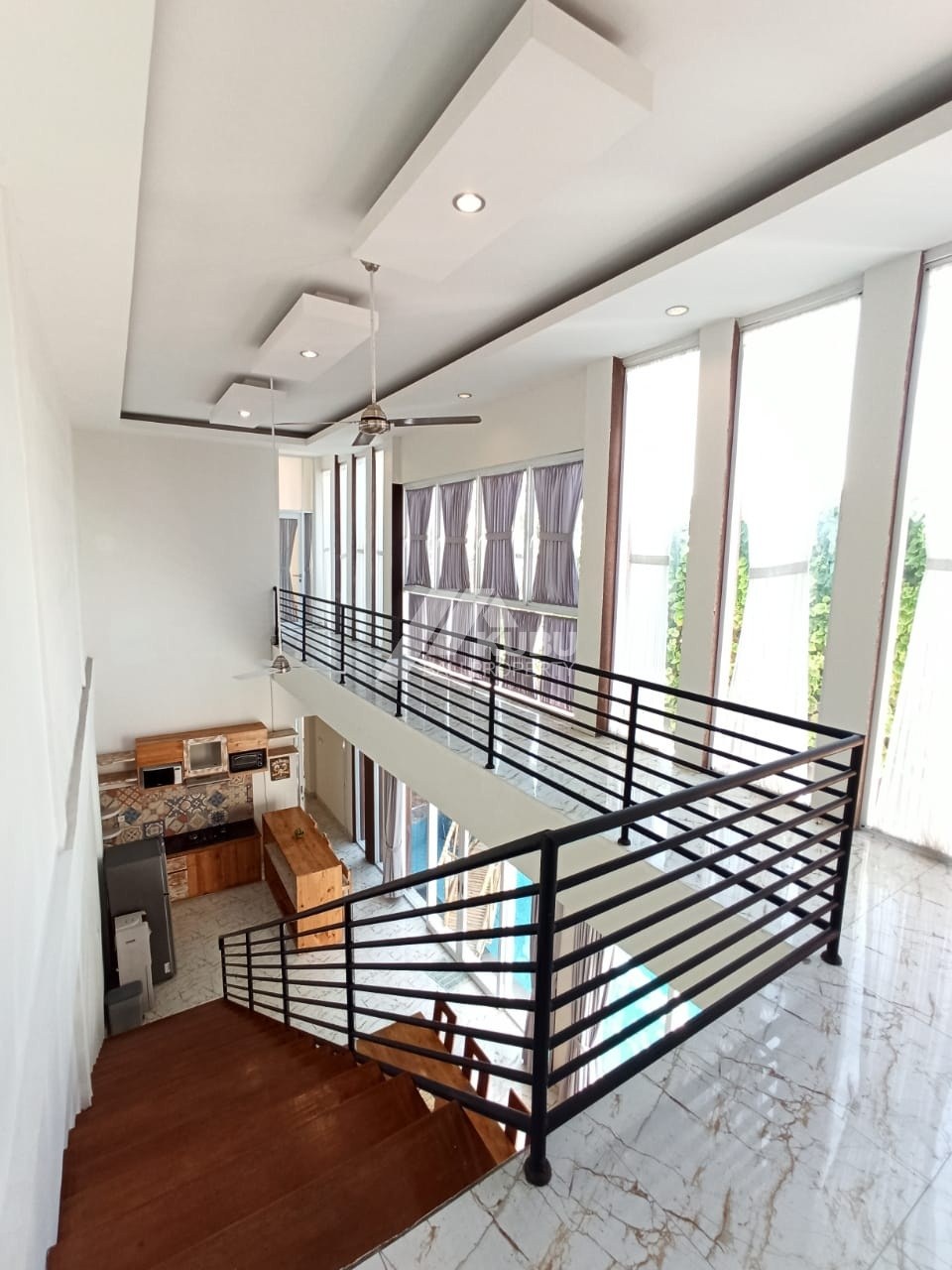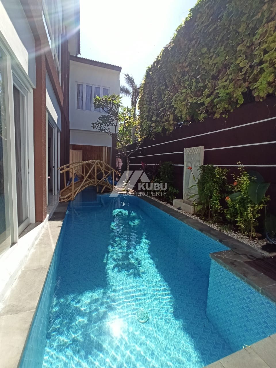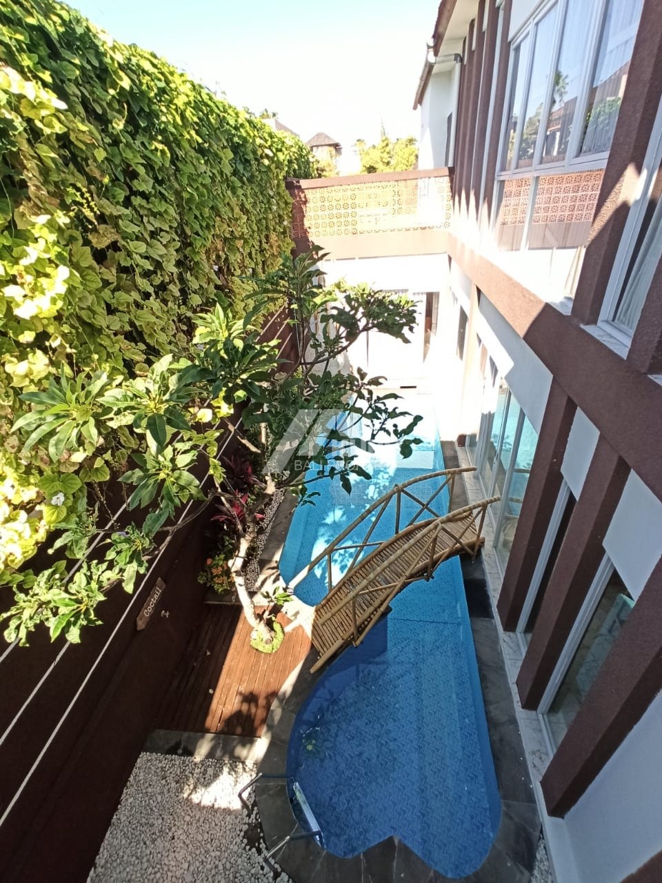 2-storey building with a rooftop for sunbathing and relaxation. a long swimming pool with a beautiful design.